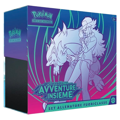 Il Set Allenatore Fuoriclasse dell’espansione Scarlatto e Violetto Avventure Insieme del GCC Pokemon contiene: